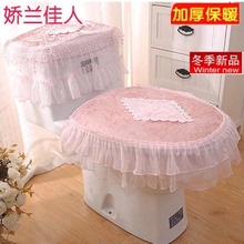 马桶垫三件套 坐便套 蕾丝马桶坐便三件套 坐便垫 u型拉链马桶圈