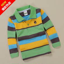 童装春款儿童长袖T恤纯棉中大童T恤衫男童条纹翻领polo衫新款百搭