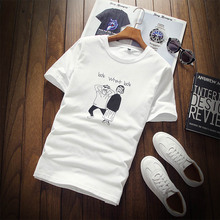 男夏季短袖t恤青年学生圆领半袖体恤日系卡通印花修身短上衣夏天