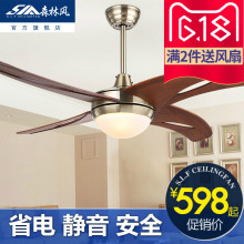森林风LED吊扇灯现代家装美式仿古单灯实木叶餐厅卧室静音电扇灯