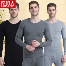 南极人男士纯棉V领青年修身秋衣秋裤冬季保暖内衣套装打底棉毛衫