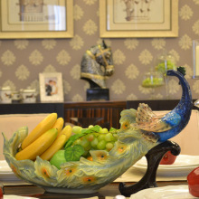 欧式孔雀装饰水果盘家居用品树脂工艺品创意样板房装饰品软装摆件