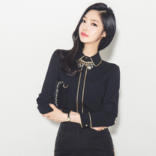 2017夏装新款韩版职业气质女装修身长袖衬衫领上衣衬衫百搭打底衫