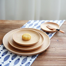 日式天然杉木碟实木圆盘子创意大小号点心甜品零食水果碟原木托盘