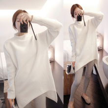 秋冬韩国女装不规则打底针织衫女套头中长款加厚宽松半高领毛衣