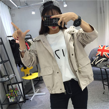春秋装短款连帽纯棉学院韩版休闲女士拉链风衣工装外套宽松短款