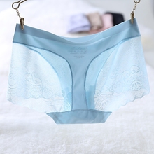 无痕内裤女 中腰 一片式日系性感柔软舒适大蕾丝三角裤头 纯棉裆