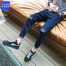 春夏装男士牛仔裤 直筒贴布潮男青少年弹力韩版修身休闲小脚裤