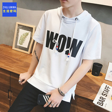 夏季连帽短袖男士休闲青年日韩潮韩版修身男装印花夏天T恤衫