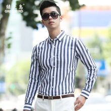 绿头鸟秋冬季韩版修身竖条纹长袖衬衫男士纯棉休闲衬衣商务寸衫潮