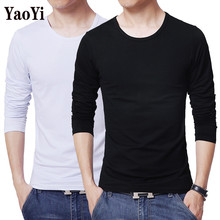 男装长袖t恤衫春秋纯棉修身圆领大码纯色t恤男士套头舒适打底体恤