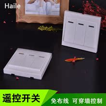 海乐免布线双控无线遥控智能开关220V三路灯具随意贴墙壁面板穿墙