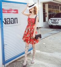 泰国旅游吊带背心连衣裙大摆A字裙波西米亚海边度假沙滩裙短裙