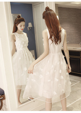 韩国新款名媛刺绣立体花朵欧根纱高腰大码显瘦无袖公主蓬蓬连衣裙