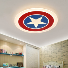 男孩儿童房灯卡通LED圆形吸顶灯星星护眼卧室灯美国队长调光灯具