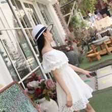 一字领露肩蕾丝连衣裙女夏2017新款韩版显瘦学生短裙公主裙礼服裙