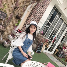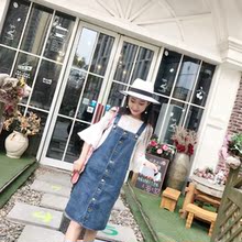 2017春季韩版单排扣高腰牛仔背带裙两件套女中长款学生百搭一步裙