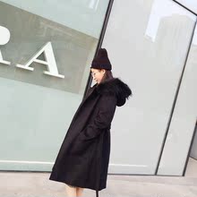 韩版宽松毛呢外套女中长款2016冬新款韩国貉毛领羊绒大衣过膝加厚