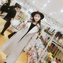 2016冬季新款女装气质修身系带毛呢大衣中长款韩版风衣外套女学生