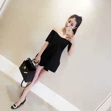 女装夏装2016新款潮一字领小礼服露肩上衣度假名媛风短款连衣裙