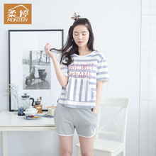 柔婷夏季新款睡衣女夏套装短袖韩版纯棉家居服女夏短裤薄款加大码