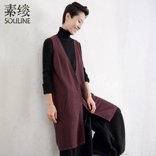 素缕旗舰店2017春装新款女装棉麻开衫针织衫女外搭中长款马甲外套