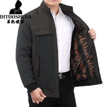 中老年夹克男老年人男装立领加绒加厚中年父亲冬装老人外套男