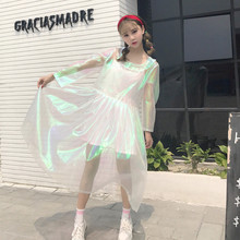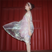 夏季女装日系软妹可爱七彩流光透明甜美宽松娃娃裙网纱百搭罩衫