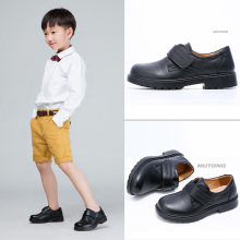 牧童童鞋春秋季男童中童魔术贴黑色皮鞋艺术表演牛皮皮鞋6-10岁