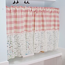 美式 地中海粉色格子白色蕾丝卫生间半帘门帘厨房帘咖啡帘防尘帘