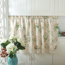 美式花卉叶子小窗帘穿杆布艺半帘厨房咖啡帘门帘隔断帘挂帘洗衣台