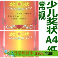A4 奖状纸 小学生奖状证书 幼儿园小奖状 加厚可打印 批发