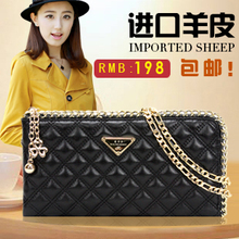 维卡多真皮手拿包女2016新款羊皮手抓包大容量拉链包菱格链条包