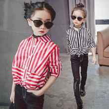 2017女童春季新款衬衫春装新款女童韩版长袖条纹衬衫儿童衬衣上衣
