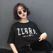 2017夏季新短袖T恤BF原宿风学生卡通字母破洞宽松中长款卫衣女潮