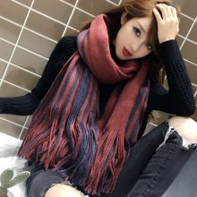 韩版百搭围巾女冬季加厚学生条纹仿羊绒针织双面围脖长款披肩元旦