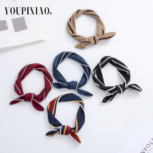 韩国百搭春夏女士雪纺蝴蝶结英伦条纹领巾头饰发带领结韩版小丝巾