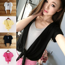 百搭莫代尔小外套小外搭女夏薄开衫短袖小坎肩短款修身系带小披肩