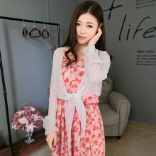 夏季小开衫女短款夏裙子披肩小外套打结绑带收腰上衣超薄雪纺外搭