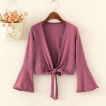 针织小外套女春秋百搭短款喇叭袖开衫薄款长袖外搭披肩上衣空调衫