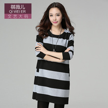 韩版春装新款大码女装胖妹妹显瘦连衣裙条纹宽松打底衫加肥加大版