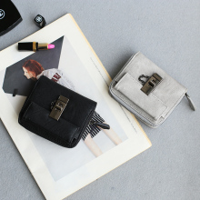 油蜡皮锁扣迷你短款钱包韩版潮休闲精致小零钱包复古拉链条小包