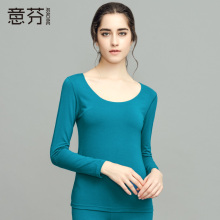 意芬女士薄款莫代尔修身保暖内衣上衣单件莫奈尔纯色低大圆领秋衣