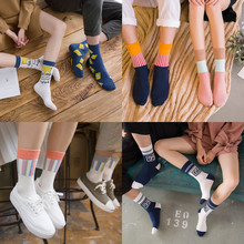 秋季纯棉韩国袜子女中筒袜潮个性复古中性短袜男女袜子纯棉情侣袜