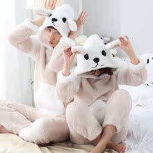卡通情侣睡衣冬季加厚保暖可爱动物男女士毛绒学生长袖珊瑚绒套装