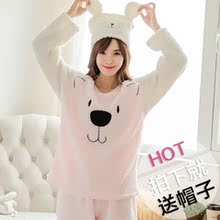 可爱卡通动物长袖保暖加厚熊睡衣女冬长袖毛绒韩版学生珊瑚绒套装