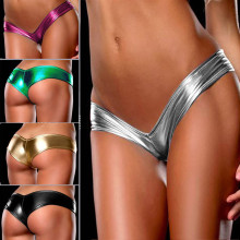欧美诱惑露毛丁字裤女性感情趣仿皮烫金女士亮光无痕内裤T裤sm