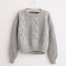 套头2017女新款复古粗线毛衣短款绞八麻花韩版针织衫高腰学院外套