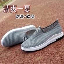 老北京布鞋男鞋夏季新款网鞋一脚蹬平底透气网面爸爸鞋休闲运动鞋