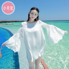 蕾丝拼接海边沙滩裙夏仙女装雪纺波西米亚中长裙显瘦度假连衣裙短